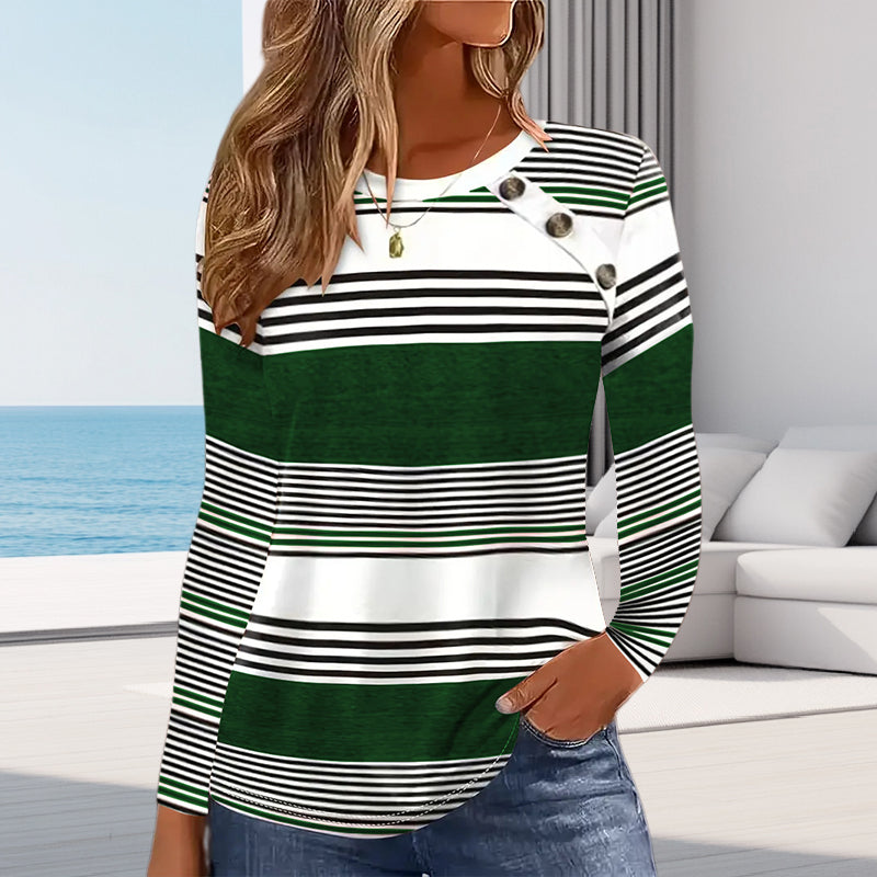 Package Includes: 1 * Women's Striped patchwork Round Neck Long Sleeve Top