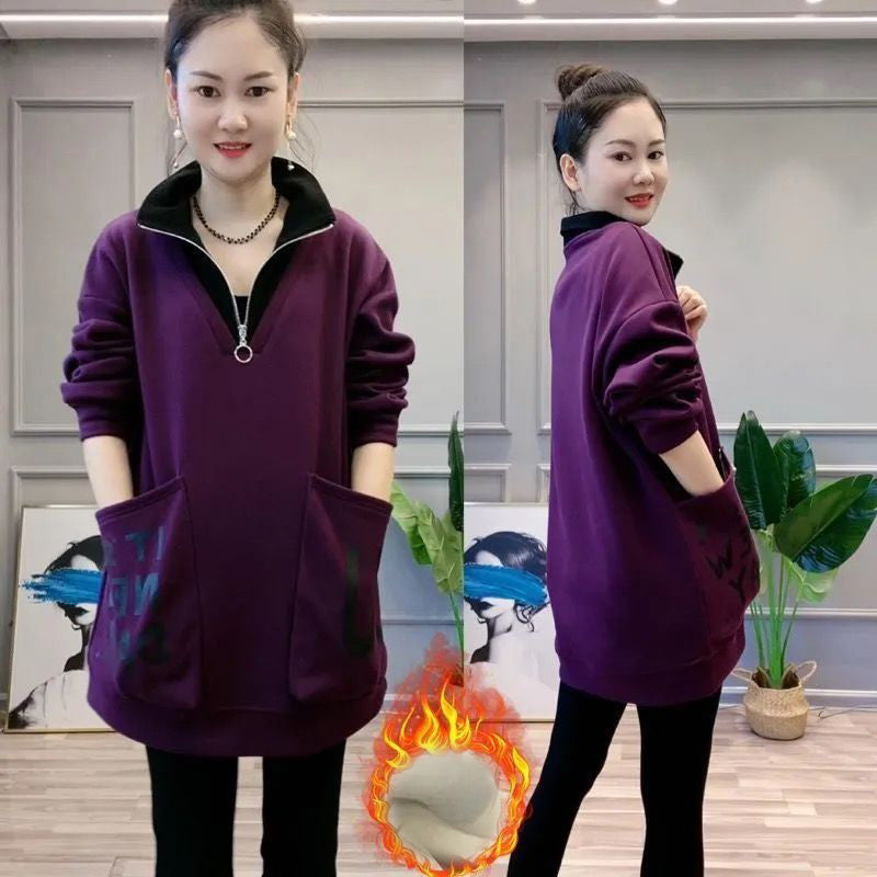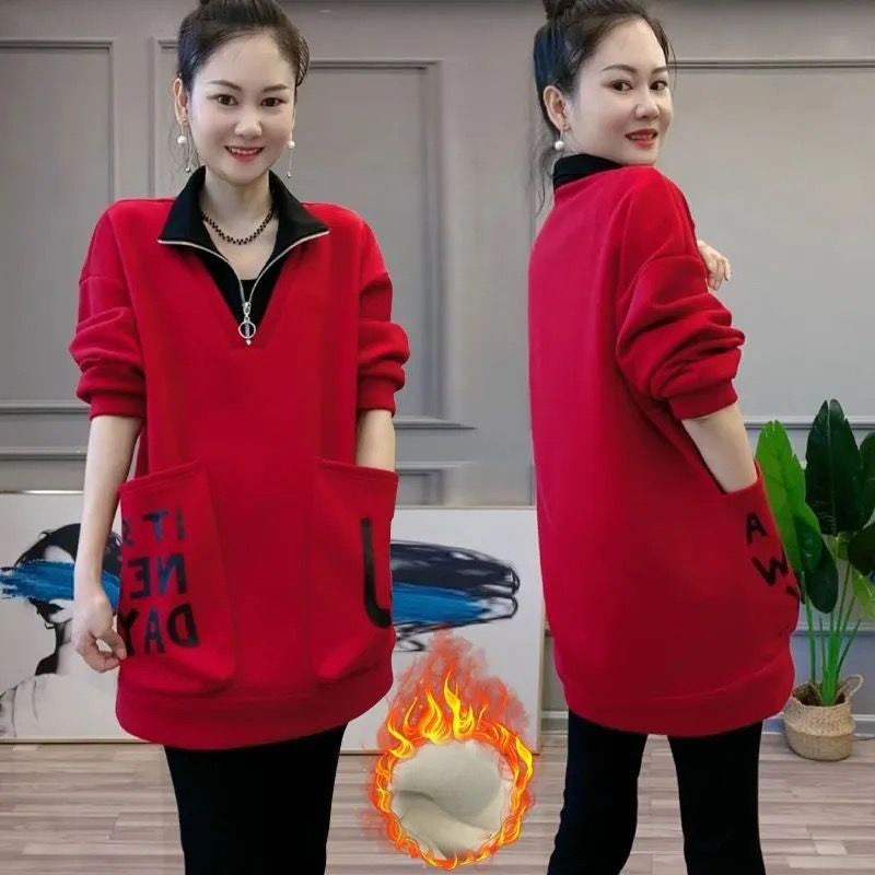 COZY HALF-ZIP DESIGN: Equipped with a convenient half-zip neckline, this midi top allows for easy wear and adjustability, letting you control the level of warmth and ventilation.